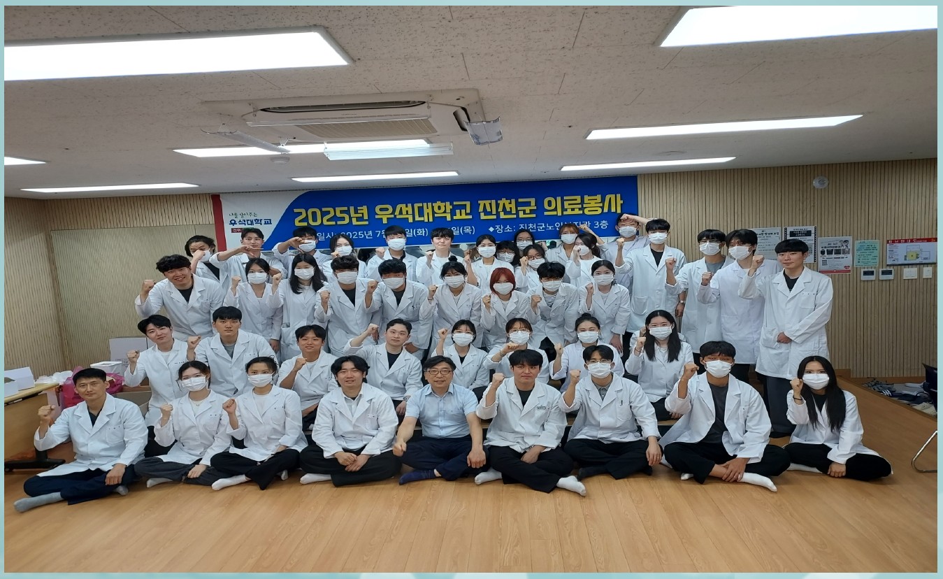 Áö³­ 2023³â¿¡ ÀÌ¾î ¿ÃÇØ±îÁö 4ȸ° ÀÇ·áºÀ»ç¸¦ ½Ç½ÃÇϰí ÀÖ´Â ¿ì¼®´ëÇб³ Çлýµé ¹× °ü°èÀںе鲲 °¨»çµå¸³´Ï´Ù. ¶Ç ½ÒÀ» ±âÅ¹ÇØ ÁØ ³óÇùÁøÃµ±ºÁöºÎ¿¡µµ °¨»çµå¸³´Ï´Ù.