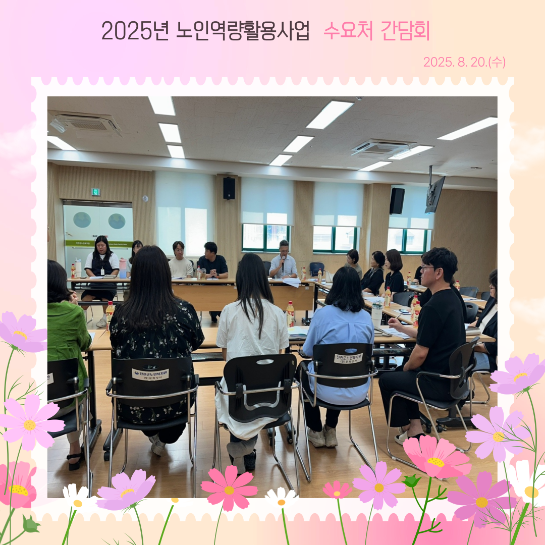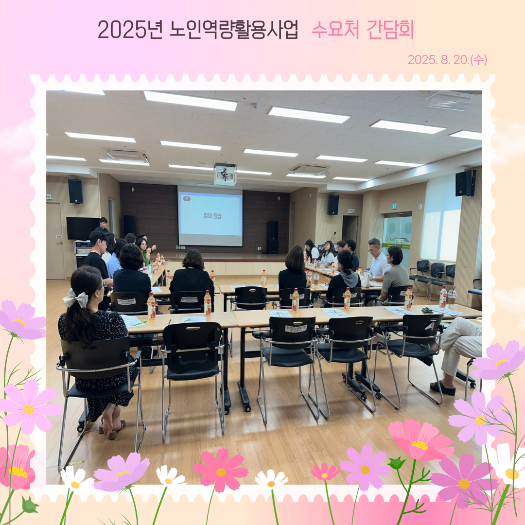 2025³â 8¿ù 20ÀÏ(¼ö) 11:00, ³ëÀοª·®È°¿ë»ç¾÷(º¹ÁöÇöÀåȰµ¿°¡, ½Ã´Ï¾î¿µ»óÃÔ¿µ´Ü, ¾ÆÀ̰¡Ä¡µ¹º½) ¼ö¿äó ´ã´çÀÚ 14¸íÀ» ¸ð½Ã°í ¼ö¿äó °£´ãȸ¸¦ ½Ç½ÃÇÏ¿´½À´Ï´Ù.