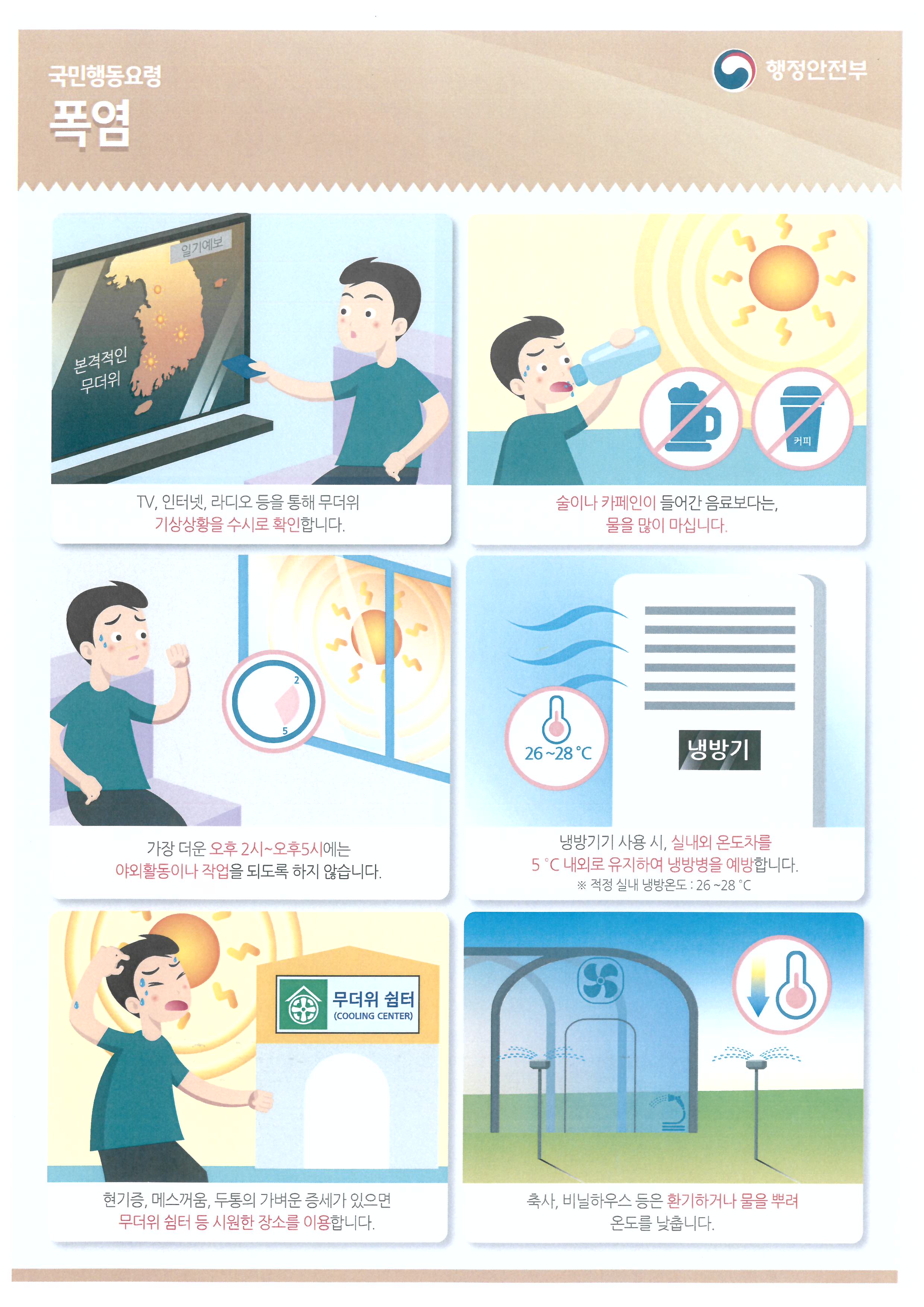 Æø¿°À¸·Î ÀÎÇÑ ÇÇÇØ°¡ ¹ß»ýµÇÁö ¾Êµµ·Ï ¹«´õ¿î ½Ã°£´ë(12:00 ~ 17:00)¿¡´Â