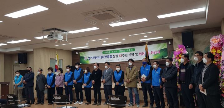 2021 »ý°ÅÁøÃµÄ«³×À̼ÇŬ·´ ⸳13Áֳ⠱â³ä ¹× ȸÀå ÀÌÃëÀÓ½ÄÀÌ 4¿ù 20ÀÏ ¿ì¸® º¹Áö°ü 2Ãþ °´ç¿¡¼ ȸ¿ø µî 40¿©¸íÀÌ Âü¼®ÇÑ °¡¿îµ¥ °³ÃֵǾú½À´Ï´Ù.
