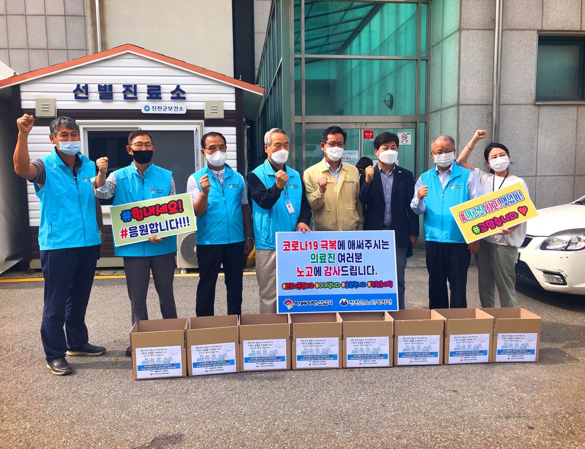9¿ù 14ÀÏ È¿äÀÏ, ¼±¹è½Ã¹Î ¼±¾Ïȸ¿¡¼ ÁøÃµ±º ÀÇ·áÁ¾»çÀÚ¸¦ °Ý·ÁÇϱâ À§ÇØ Ä¿ÇÇ µî À½·á 170¿©ÀÜÀ» Á÷Á¢ ¸¸µé¾î¼ÁøÃµ±ºº¸°Ç¼Ò Á÷¿ø ¹× ¼±º°Áø·á¼Ò, ¹é½ÅÁ¢Á¾¿¹¹æ¼¾ÅÍ(ȶû°ü) Á¾»çÀÚ¿¡°Ô Àü´ÞÇÏ¿© °Ý·ÁÇÏ¿´½À´Ï´Ù.8¿ùºÎÅÍ Áö¼ÓÀûÀ¸·Î ¿ù 1ȸ, ÀÇ·á Á¾»çÀںеéÀ» °Ý·ÁÇϱâ À§ÇØ ¼±¾Ïȸ¿¡¼ ÁغñÇϰí ÀÖ½À´Ï´Ù!ÀÇ·á Á¾»çÀںеéÀÇ ³ë°í¿¡ °¨»çµå¸³´Ï´Ù~!