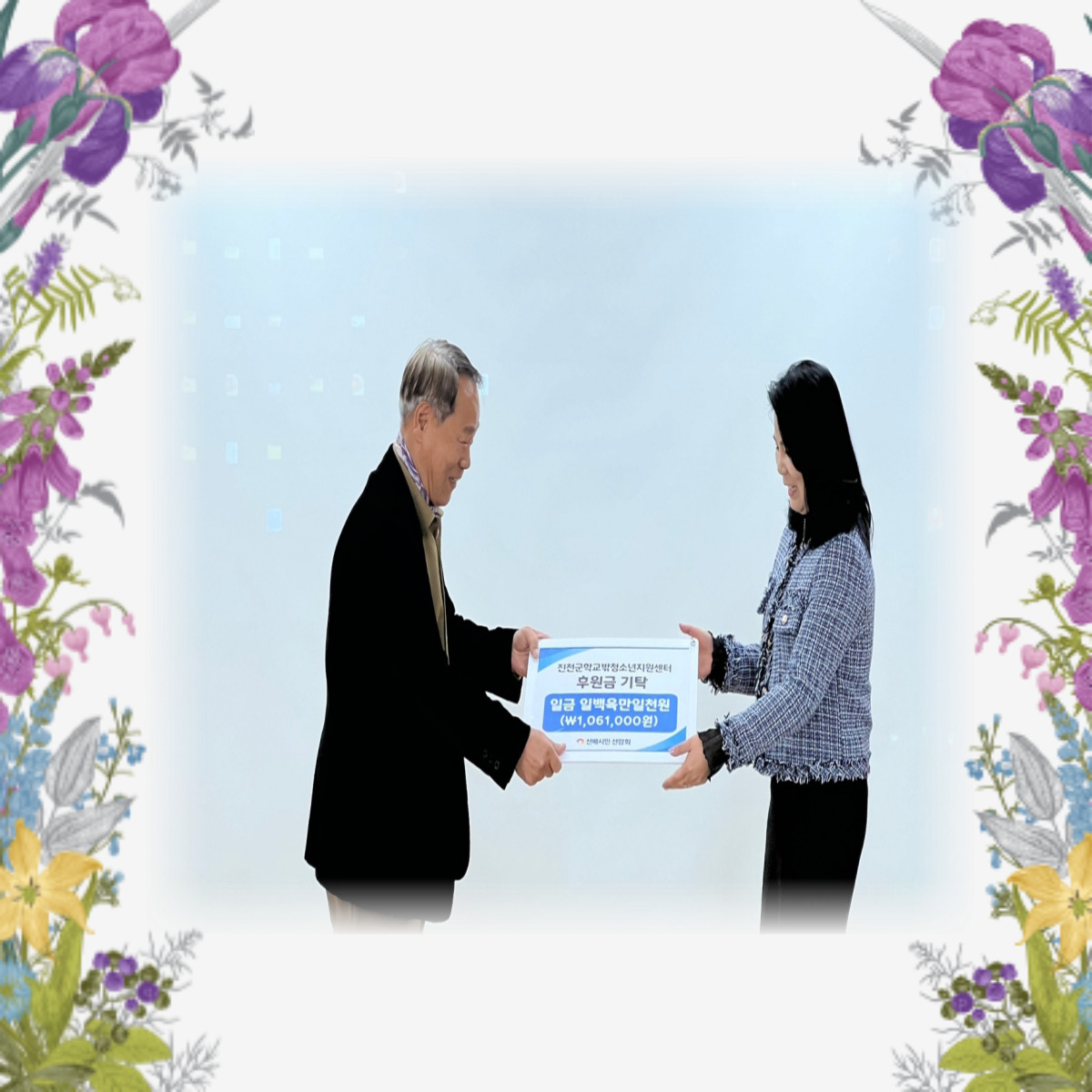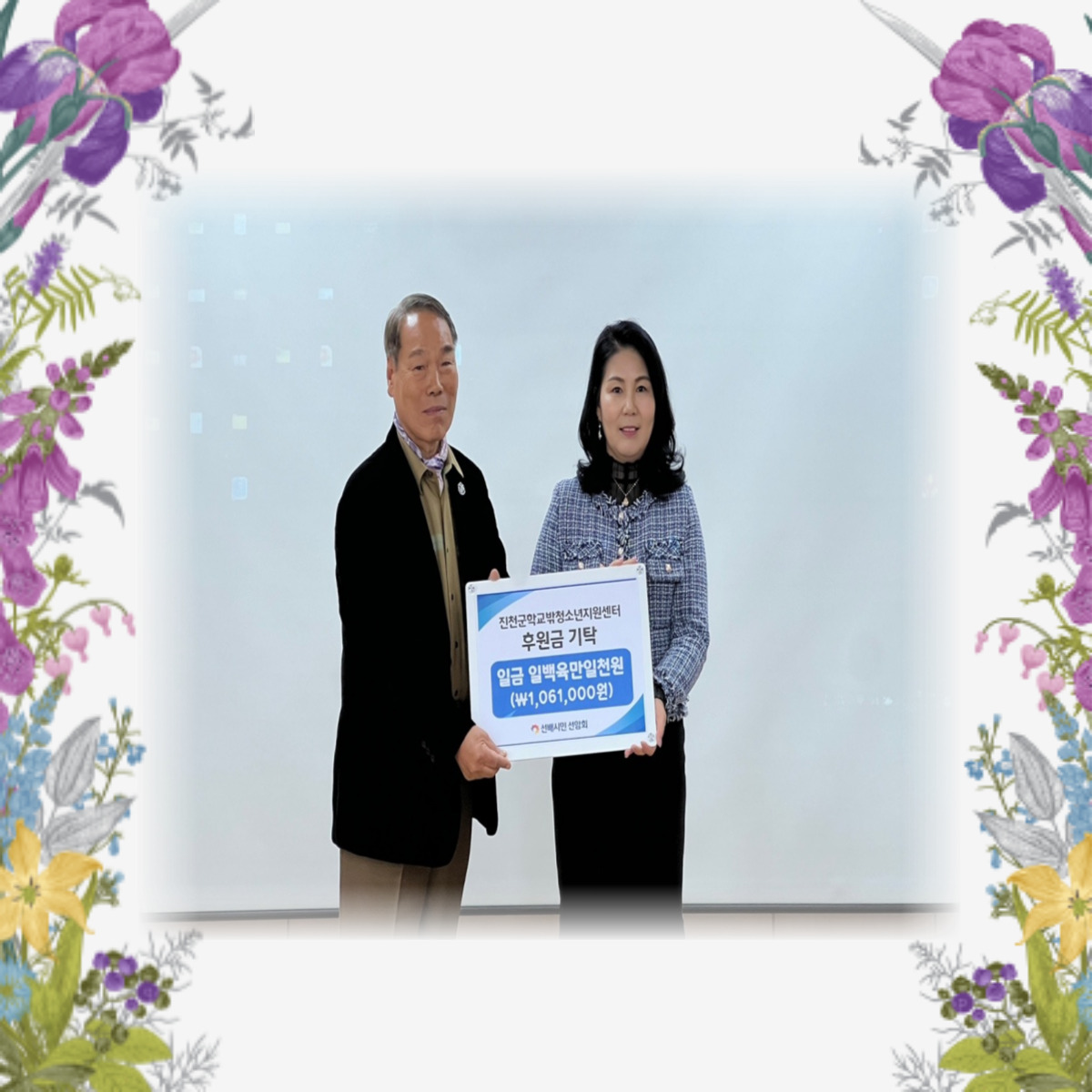 ¼±¹è½Ã¹Î ¼±¾Ïȸ°¡ 11¿ù 28ÀÏ ¿ÀÈÄ º¹Áö°ü 3Ãþ °´ç¿¡¼ 10¿ù Áö¿ªÁֹΰú ÇÔ²²ÇÑ ¹ÙÀÚȸ ¼öÀÔ±Ý 1,061,000¿ø Àü¾×À» ÁøÃµ±ºÇб³¹Ûû¼Ò³âÁö¿ø¼¾ÅÍ ÈÄ¿ø±ÝÀ¸·Î Àü´ÞÇÏ´Â ±âʽÄÀ» °¡Á³½À´Ï´Ù.