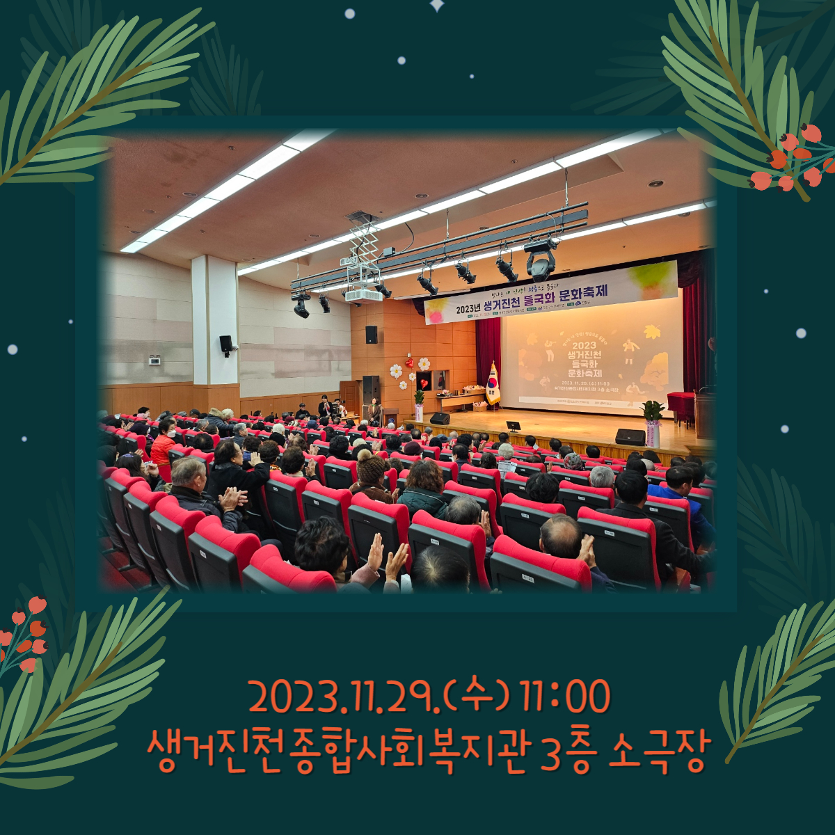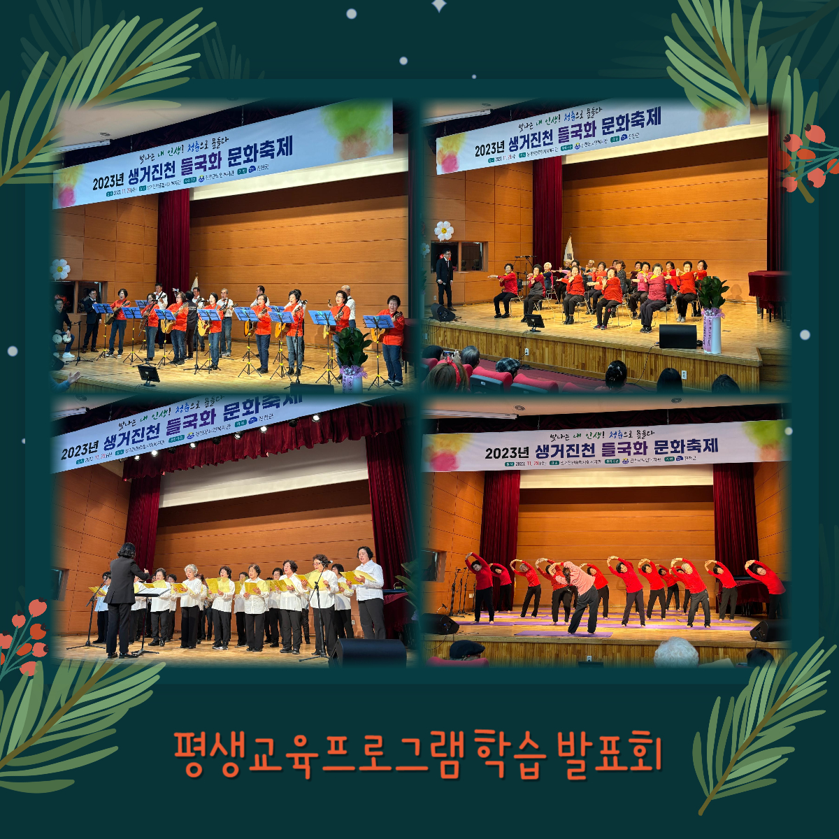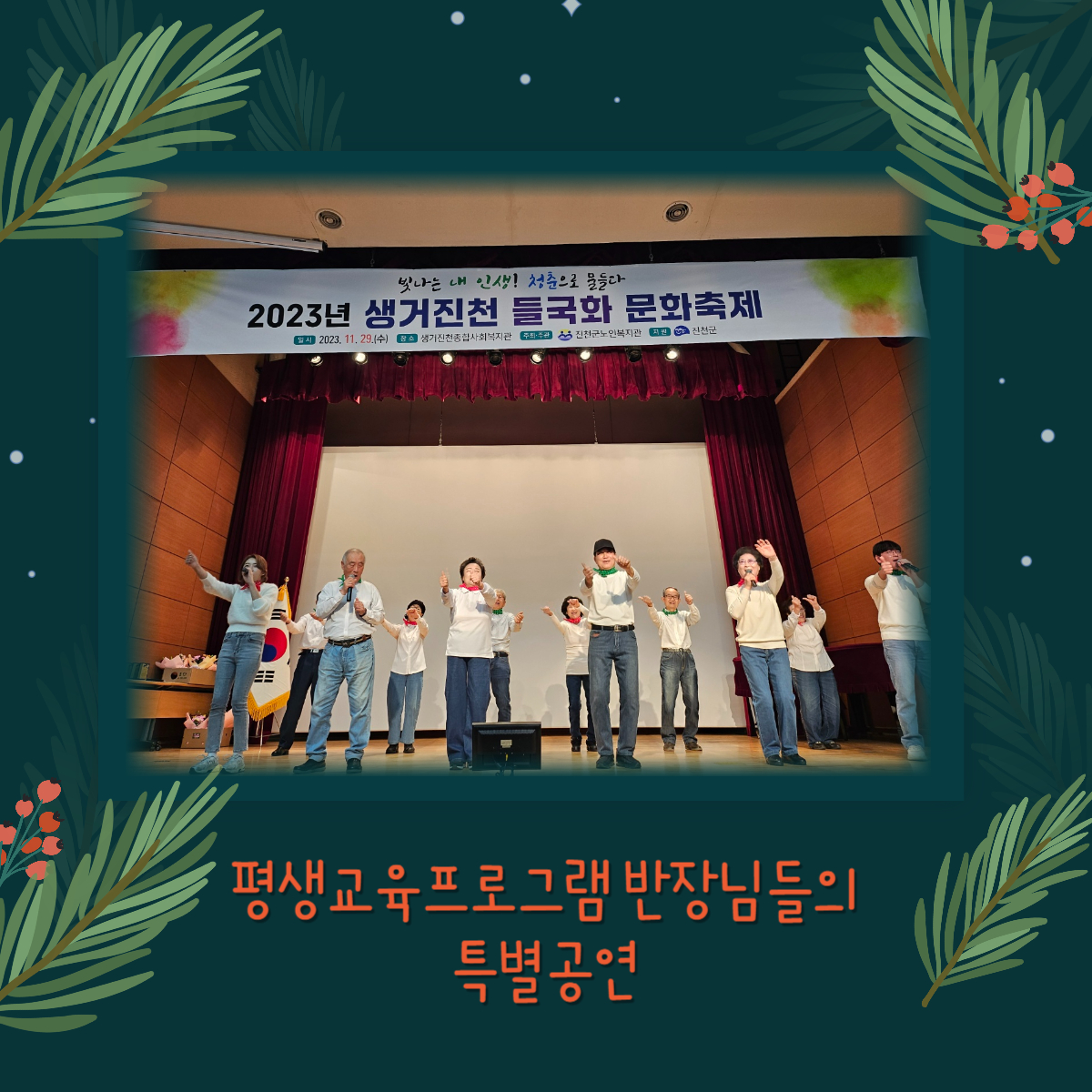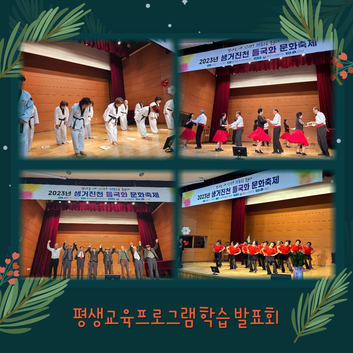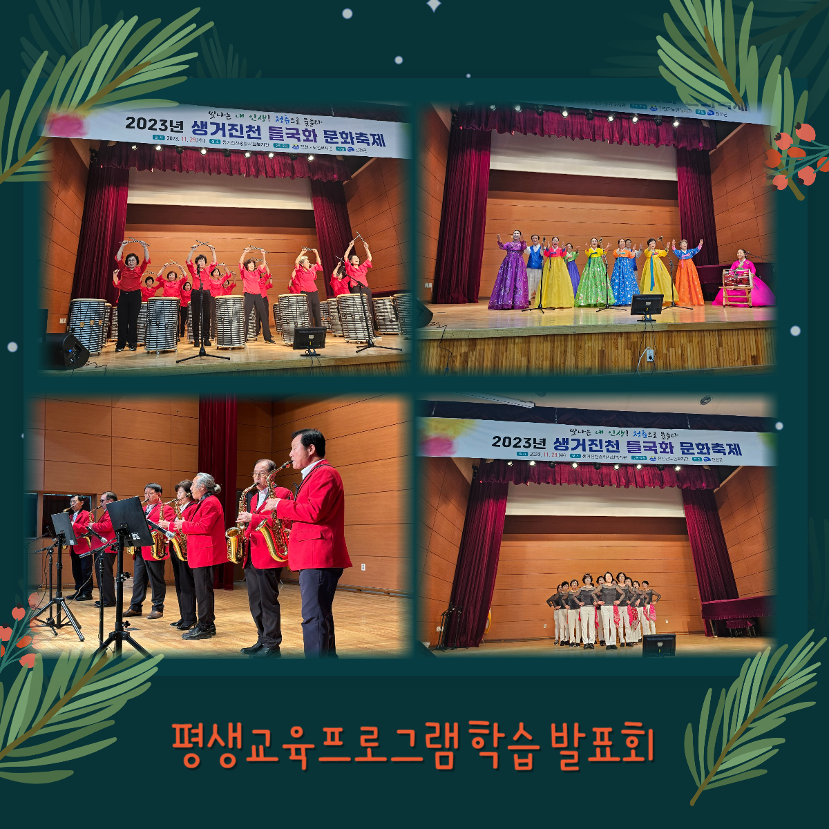 2023.11.29.(¼ö) 11:00~16:00 »ý°ÅÁøÃµÁ¾ÇÕ»çȸº¹Áö°ü 3Ãþ ¼Ò±ØÀå¿¡¼ ÁøÃµ±º³ëÀκ¹Áö°ü Æò»ý±³À°ÇÁ·Î±×·¥ ÇнÀ ¹ßǥȸ¸¦ °³ÃÖÇÏ¿´½À´Ï´Ù.