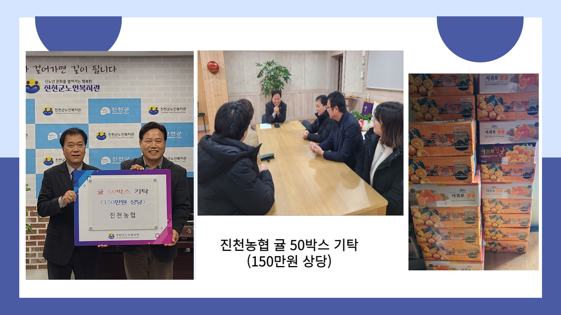 ¡¶ÈÄ¿ø¹°Ç° ±âʽġ·¡ÛÀϽÃ: 2023.12.21.(¸ñ) 9:30¡ÛÀå¼Ò: ÁøÃµ±º³ëÀκ¹Áö°üÁøÃµ³ó¾÷Çùµ¿Á¶ÇÕ(Á¶ÇÕÀå ¹Ú±âÇö)¿¡¼ ±Ö50¹Ú½º(150¸¸¿ø »ó´ç)¸¦ º¹Áö°ü¿¡ ±âÅ¹ÇØ Áּ̽À´Ï´Ù.¹Ú±âÇö Á¶ÇÕÀåÀº "¿¬¸» ¾î¸£½Åµé²² Á¶±ÝÀ̳ª¸¶ µµ¿òÀÌ µÇ°í ½Í´Ù"¸ç ±ÖÀ» ±âÅ¹ÇØ Áּ̽À´Ï´Ù. ±âÅ¹ÇØ ÁֽбÖÀº °æ·Î½Ä´ç ÀÌ¿ë ¾î¸£½Å ¹× °æ·Î´ç ÀÌ¿ë ¾î¸£½Å²² Àß Àü´ÞÇϵµ·Ï ÇϰڽÀ´Ï´Ù.#ÁøÃµ±º³ëÀκ¹Áö°ü#ÁøÃµ³ó¾÷Çùµ¿Á¶ÇÕ#ÈÄ¿ø¹°Ç° ±âʽÄ