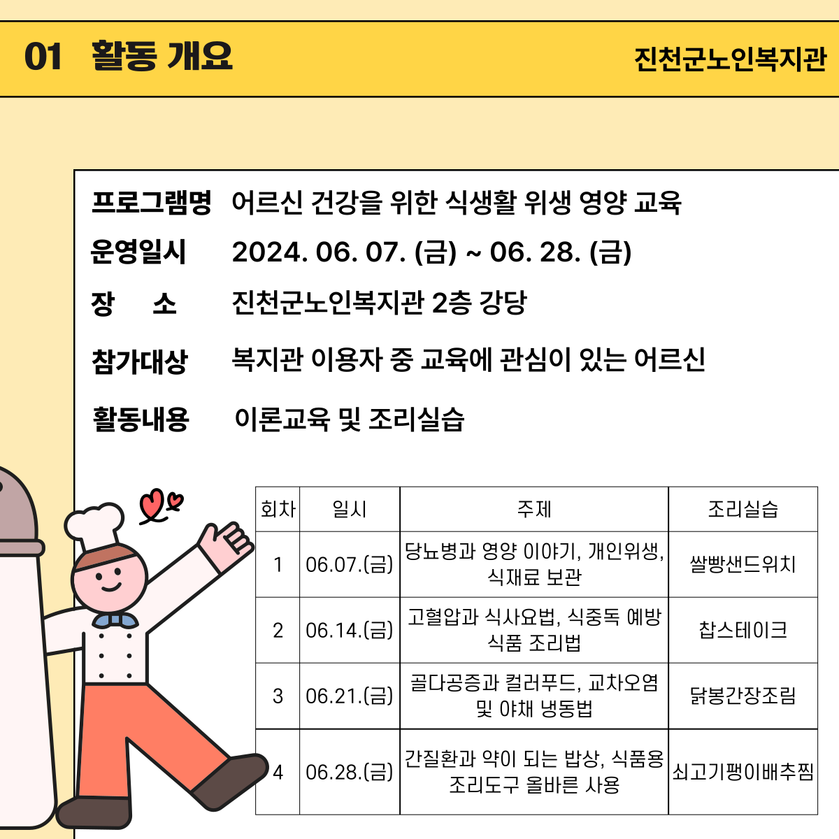 <2024³â ¾î¸£½Å °Ç°À» À§ÇÑ ½Ä»ýȰ À§»ý ¿µ¾ç ±³À°>6¿ù ÇÑ´Þ µ¿¾È ÃæºÏ¿µ¾ç»çÇùȸ¿Í ¿¬°èÇÏ¿© ¾î¸£½Å °Ç°À» À§ÇÑ ½Ä»ýȰ À§»ý ¿µ¾ç ±³À°À» ÁøÇàÇÏ¿´½À´Ï´Ù~🍉🥕🥔🥑🍆🌰Àü¹® ¿µ¾ç»ç´Ô²²¼ ¾î¸£½Åµé °Ç°¿¡ µµ¿òÀÌ µÇ´Â À§»ý ¹× ¿µ¾ç ±³À°À» ÇØÁֽðí, 25¸íÀÇ ¾î¸£½ÅµéÀÌ ÇÔ²² Á¶¸®½Ç½À ¹× ½Ã½ÄÀ» ÇÏ´Â ½Ã°£À» °¡Á³½À´Ï´Ù.¹è¿î °Í¿¡¼ ³¡³ °ÍÀÌ ¾Æ´Ñ ¾î¸£½ÅµéÀÌ ÁýÀ¸·Î °¡¼Å¼ ¹è¿î ·¹½ÃÇÇ´ë·Î Á÷Á¢ ¸¸µé¾îº¸½Ã°í ¸ÚÁø »çÁøÀ» º¸³»Áּ̽À´Ï´Ù. 📷ªÀº ȸ±â¿´Áö¸¸ ¾î¸£½ÅµéÀÇ ¸¸Á·µµ°¡ ±²ÀåÈ÷ ³ôÀº ±³À°À̾ú½À´Ï´Ù. ´ã´çÀڷμ ´ÙÀ½¹ø¿¡µµ ÀÌ·± ±âȸ°¡ »ý±ä´Ù¸é ¾î¸£½Åµé¿¡°Ô Á¦°øÇص帮°í ½Í½À´Ï´Ù.❤️😍 ❤️