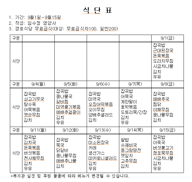 °æ·Î½Ä´ç 9¿ù »ó¹Ý±â ½Ä´Ü