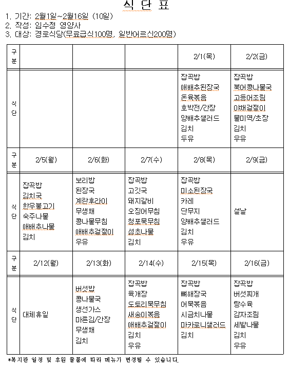 °æ·Î½Ä´ç 2¿ù »ó¹Ý±â ½Ä´Ü(2/1~2/16)