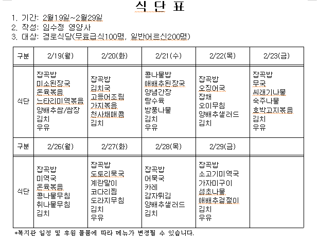 °æ·Î½Ä´ç 2¿ù ÇϹݱ⠽ĴÜ(2/19~2/29)