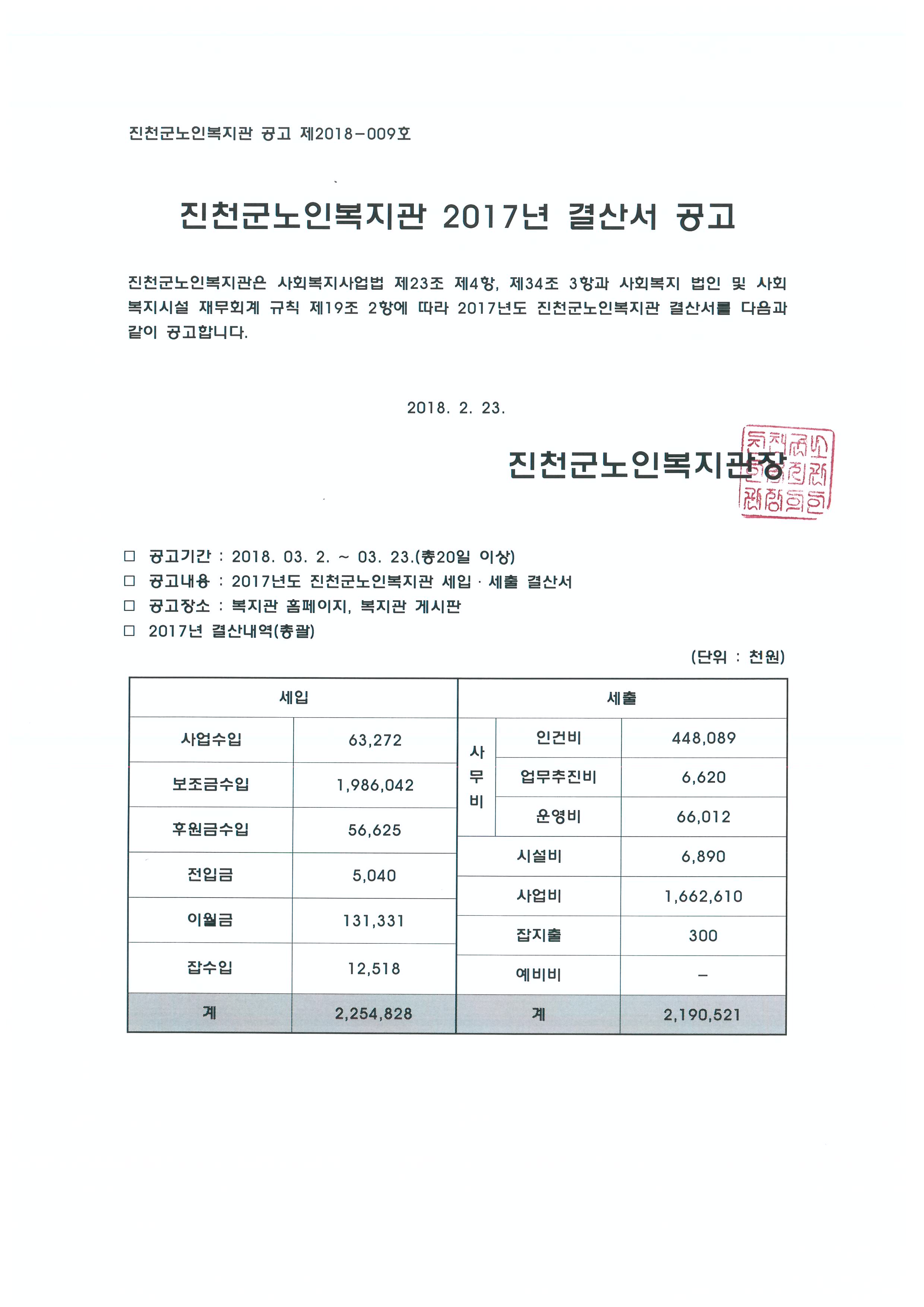 ÁøÃµ±º³ëÀκ¹Áö°ü 2017³â °á»ê¼ °ø°í
