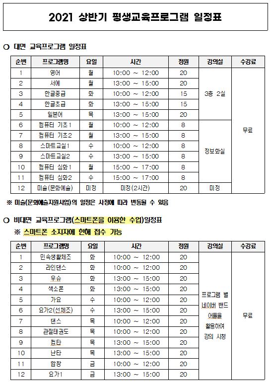 2021 »ó¹Ý±â Æò»ý±³À°ÇÁ·Î±×·¥ Á¢¼ö ¾È³»