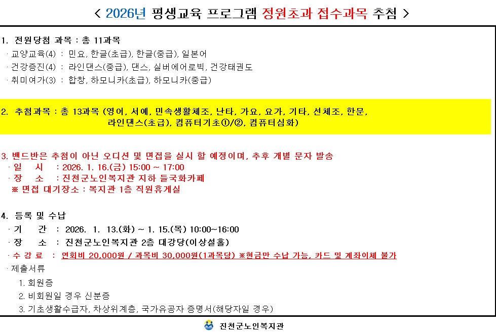 2026³â Æò»ý±³À° ÇÁ·Î±×·¥ Á¤¿øÃʰú °ú¸ñ Ãß÷ °á°ú ¾È³»