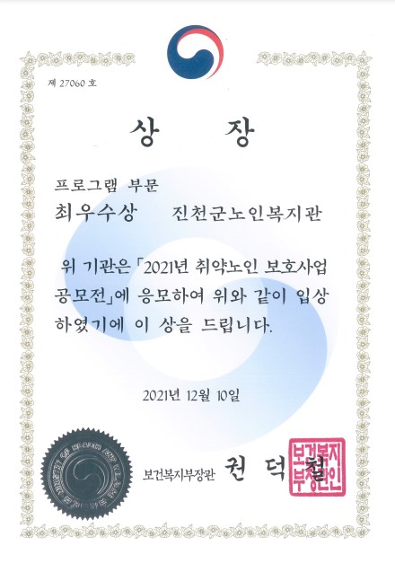[ÁøÃµ½Ã»ç½Å¹®]ÁøÃµ±º³ëÀκ¹Áö°ü, º¸°Çº¹ÁöºÎÀå°ü»ó ¼ö»ó