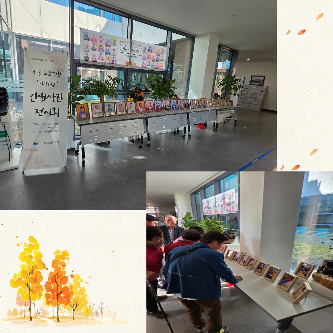 ¾î¸£½ÅÀÇ ¿ì¿ï°¨°¨¼Ò¸¦ À§ÇÑ ¿ôÀ½Ä¡·á'¾ê±âÇÔ' 5ȸ±â¸¦ ¹«»çÈ÷ ¸¶Ä¡°í Àλý»çÁø Àü½Ãȸ¸¦ 11.12(È) °³ÃÖÇÏ¿´½À´Ï´Ù.±×µ¿¾È 9/27ÀÏ~10/31ÀϱîÁö 5ȸ±âµ¿¾È Ȱµ¿»çÁø°ú Àλý»çÁøÀ» ´õÇØ ¾Æ½¬¿î ¸¶À½¿¡ ¹é°îÇàÁ¤º¹Áö¼¾ÅÍ¿¡¼ ¾à2ÁÖ°£¿¡ °ÉÃÄ »çÁøÀü½Ãȸ¸¦ ÇÕ´Ï´Ù. ¸¹Àº °ü½ÉºÎʵ右´Ï´Ù.¡ÜÀü½Ã±â°£: 24.11.11~11.22ÀÏ¡ÜÀå¼Ò: ¹é°î¸é ÇàÁ¤º¹Áö¼¾ÅÍ
