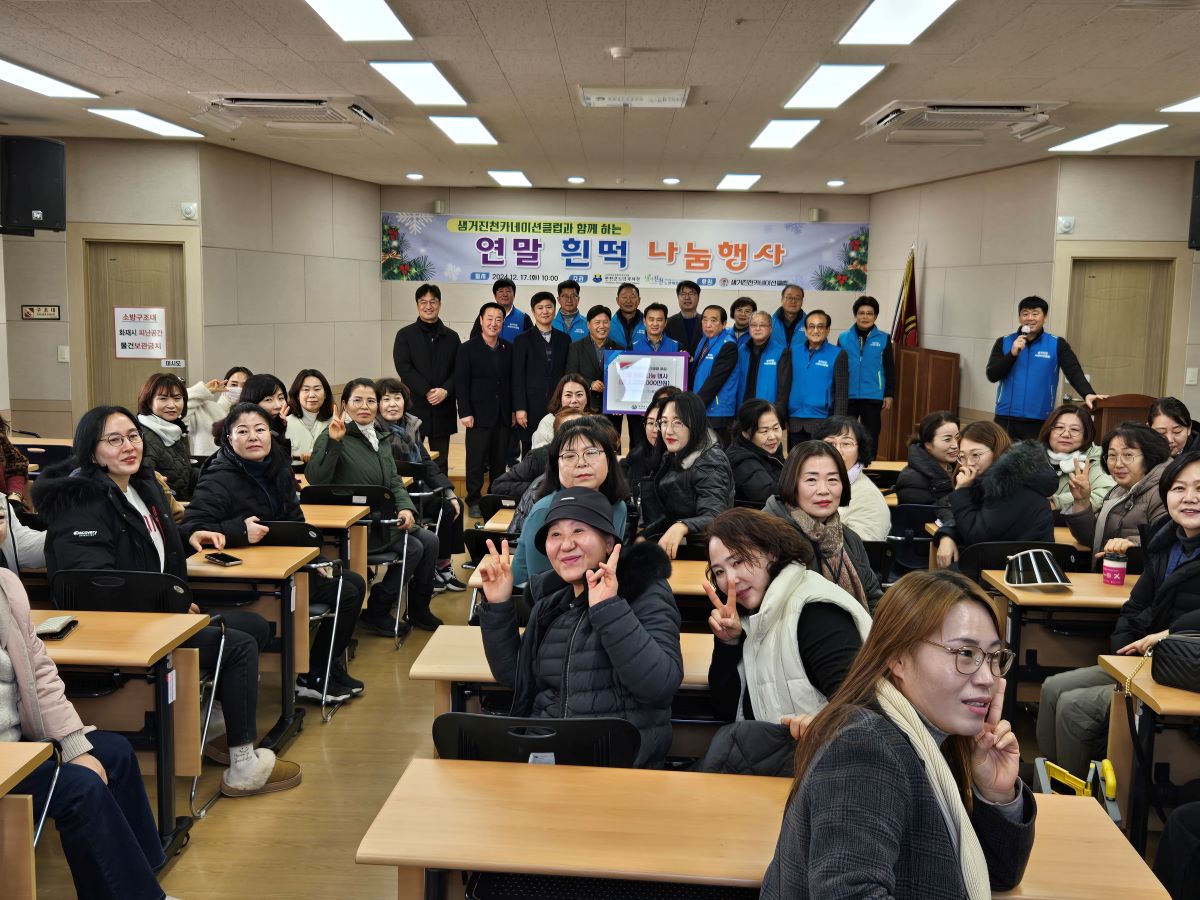 ¿À´Ã 12.17(È) »ý°ÅÁøÃµÄ«³×À̼ÇŬ·´ ¿¬°è»ç¾÷À¸·Î ¿¬¸»¿¬½Ã¸¦ ¸ÂÀÌÇÏ¿© ³ëÀθÂÃãµ¹º½´ë»óÀÚ Áß Ãë¾à°èÃþ ¾î¸£½Å ´ë»óÀÚ500¿©¸í¿¡ Èò¶± ³ª´® Çà»ç¸¦ ÁøÇàÇÏ¿´´Ù.¼Ò¿ÜµÈ ¾î¸£½Åµé¿¡°Ô »ç¶û°ú ³ª´®À» ½ÇõÇϰí ÀÖ´Â »ý°ÅÁøÃµÄ«³×À̼ÇŬ·´Àº ¿©¸§Ã¶ »ï°èÅÁ°ú À̺Ҽ¼Å¹»ç¾÷, ¸íÀý ¼±¹° Àü´ÞµîÀ» ÅëÇØ ÀÌ¿ô»ç¶ûÀ» ½ÇõÇϰí ÀÖ´Ù.