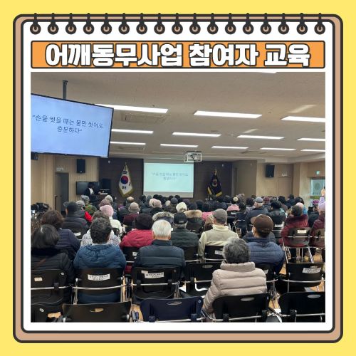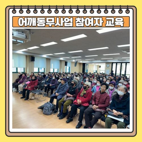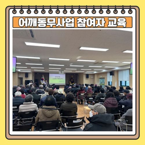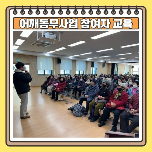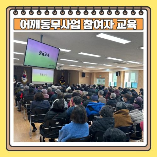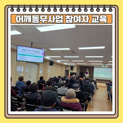 ¡Ú2026³â ³ëÀÎÀÏÀÚ¸® ¹× »çȸȰµ¿Áö¿ø»ç¾÷ ¾î±úµ¿¹« Âü¿©ÀÚ ¾ÈÀü ¹× Ȱµ¿±³À° ½Ç½Ã¡ÚÀϽÃ:2026. 1. 8.(¸ñ) 09½Ã, 14½ÃÀå¼Ò:¿ì¸®º¹Áö°ü 2Ãþ ´ë°´ç(ÀÌ»ó¼³È¦)2026³â º´¿À³â, Èñ¸ÁÂù »õÇØ°¡ ¹à¾Ò½À´Ï´Ù!🎉»õ·Î¿î ¸¶À½°ú ¼³·½À» ¾È°í Âü¿©ÀÚ ±³À°¿¡ Âü¼®ÇØ ÁֽŠ¾î¸£½ÅµéÀ» ¸ð½Ã°í ¾ÈÀü±³À°°ú Ȱµ¿±³À°À» ÁøÇàÇß½À´Ï´Ù.👏ûÁÖÀÇ·á¿ø¿¡¼ ÇöÁ÷À¸·Î Ȱµ¿ ÁßÀÎ À±¹ÌÁø °£È£»ç´ÔÀÇ °¨¿°º´ ¿¹¹æ ±³À°À» ÅëÇØ, ¾î¸£½Åµé²²¼ Àϻ󿡼 ƯÈ÷ ÁÖÀÇÇØ¾ß ÇÒ °¨¿°º´°ú ¿¹¹æ¹ý¿¡ ´ëÇØ ÀÌÇØ¸¦ ³ôÀÌ´Â ¶æ±íÀº ½Ã°£À» °¡Á³½À´Ï´Ù.❤️¶ÇÇÑ ¾î±úµ¿¹« ÀÏÀÚ¸®¿¡ ´ëÇÑ ÀںνÉÀ» °¡Áö°í Ȱµ¿¿¡ ÀÓÇÏ½Ç ¼ö ÀÖµµ·Ï Ȱµ¿±³À°µµ ÇÔ²² ÁøÇàÇß½À´Ï´Ù.😊2023³â°ú 2025³â µµÁö»ç»ó ¼ö»ó »ç·Ê¸¦ ¼Ò°³Çϰí, ¾î±úµ¿¹« Ȱµ¿À» ÅëÇØ Áö¿ª»çȸ¿¡ ½ÇÁ¦·Î Á¦°øµÈ ¼ºñ½º »ç·Ê¸¦ ¾È³»ÇÏÀÚ ¡°³»°¡ ÇÏ´Â ÀÏÀÌ ÀÌ·± ÀÇ¹Ì ÀÖ´Â ÀÏÀ̱¸³ª¡±¶ó¸ç ´õ¿í ³ôÀº °ü½É°ú °ø°¨À» º¸¿©Áּ̽À´Ï´Ù.💯¾ÕÀ¸·Î À̾îÁú 1³â°£ÀÇ È°µ¿ÀÌ ´õ¿í ±â´ëµË´Ï´Ù.Âü¿©ÀÚ ¾î¸£½ÅµéÀÇ ¸ÚÁø Ȱ¾àÀ» ÀÀ¿øÇÏ¸ç ±â´ëÇØ º¸°Ú½À´Ï´Ù!🔥