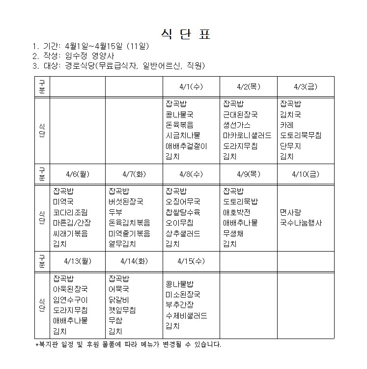 °æ·Î½Ä´ç 4¿ù »ó¹Ý±â ½Ä´Ü