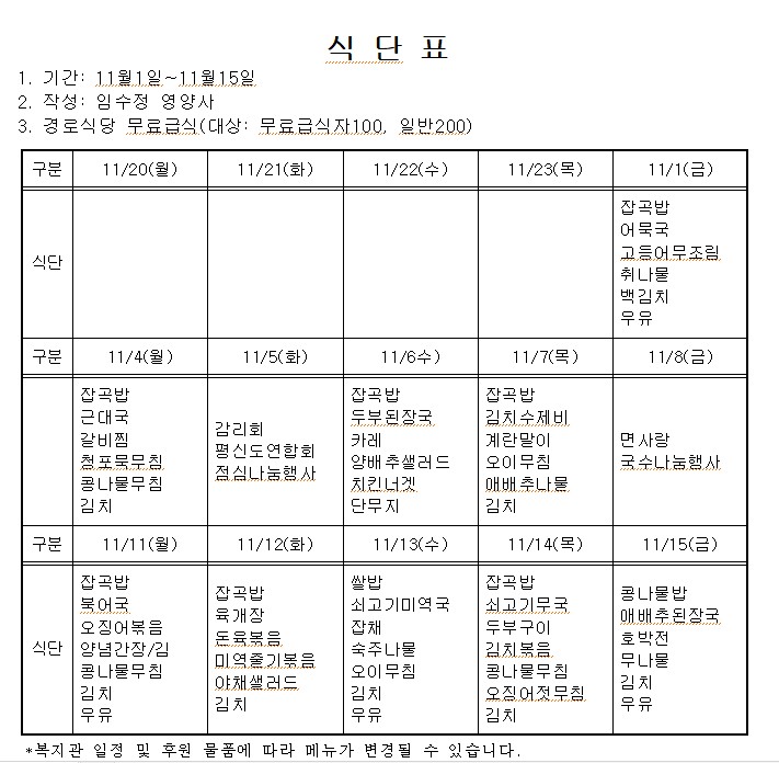 °æ·Î½Ä´ç 11¿ù »ó¹Ý±â ½Ä´Ü